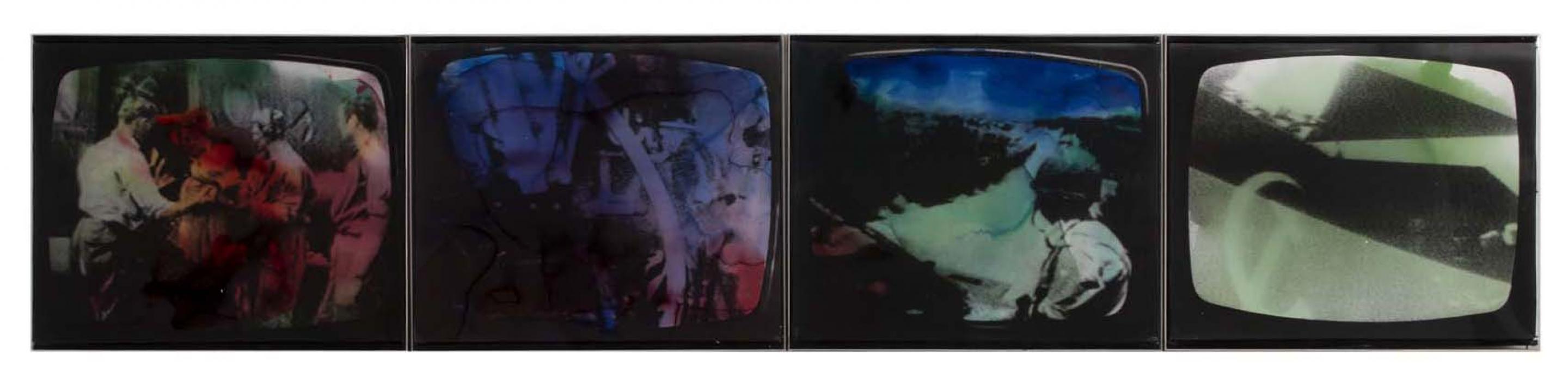 From 1970, after his political and social commitment during the protest years, he experimented with transferring television images onto emulsified canvas, adding details in industrial enamel paint. He had numerous solo exhibitions and in 1972 exhibited at the 10th Rome Quadrennial. The following year he participated in the Contemporanea exhibition, curated by Achille Bonito Oliva in the Villa Borghese parking lot. In 1974 a vast retrospective was held at Parma University, comprising one hundred works tracing his artistic career.