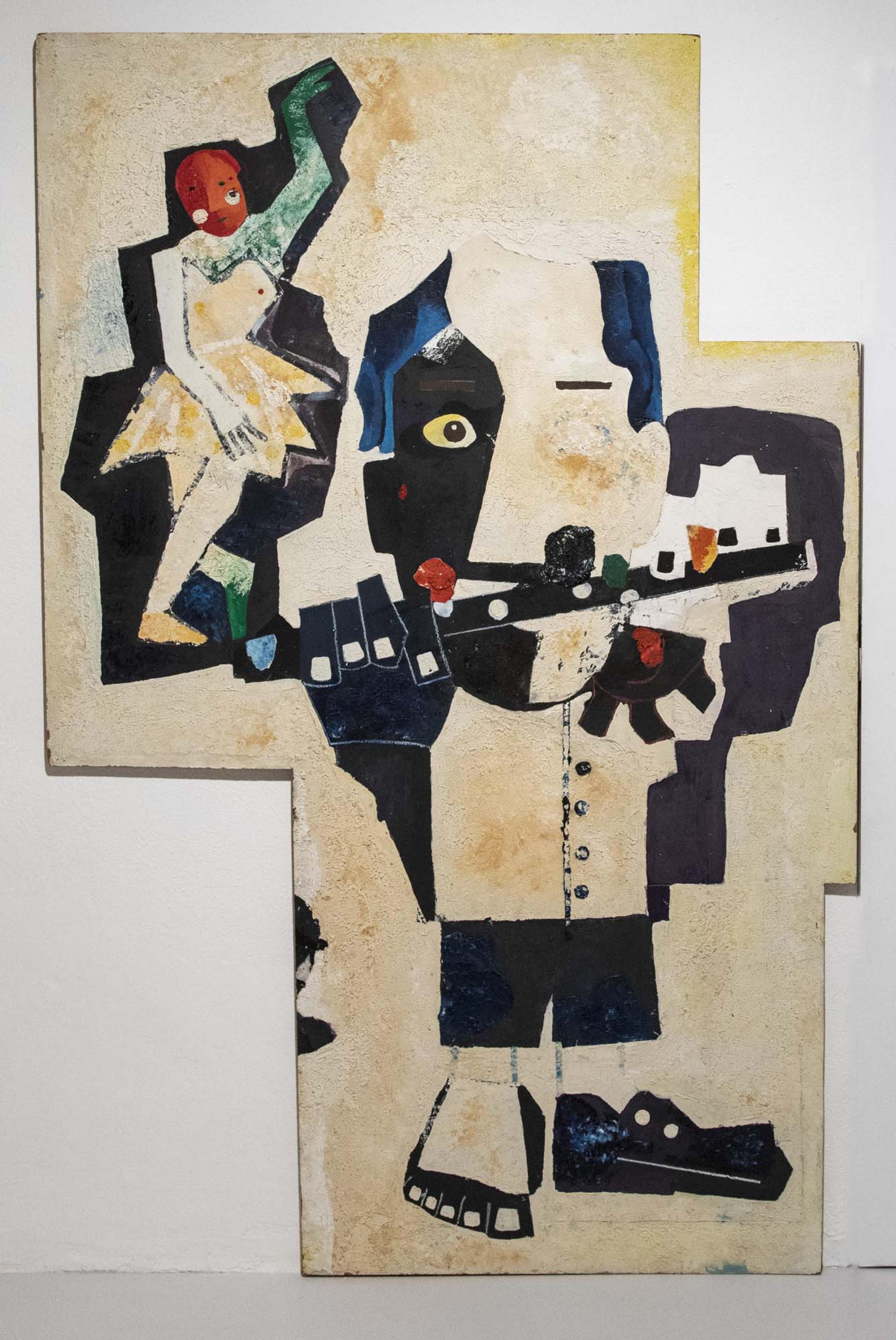 A playful, ironic, theatrical artist, Spoldi is a painter, sculptor, musician, writer, professor at the Brera Academy, member of the College of Pataphysics since 1983 and signatory of the E Il Topo Manifesto (2014). His work as an artist parallels the transformation in art and society, both of which are reflected in the various phases of his work. In 1968, the year of youth protests and the spread of Marxism, he organised a group of high school classmates to perform burlesque shows in the streets of a number of cities, later recorded in the catalogue Ben venga maggio, published by the Diagram Gallery / Luciano Inga Pin in 1972.