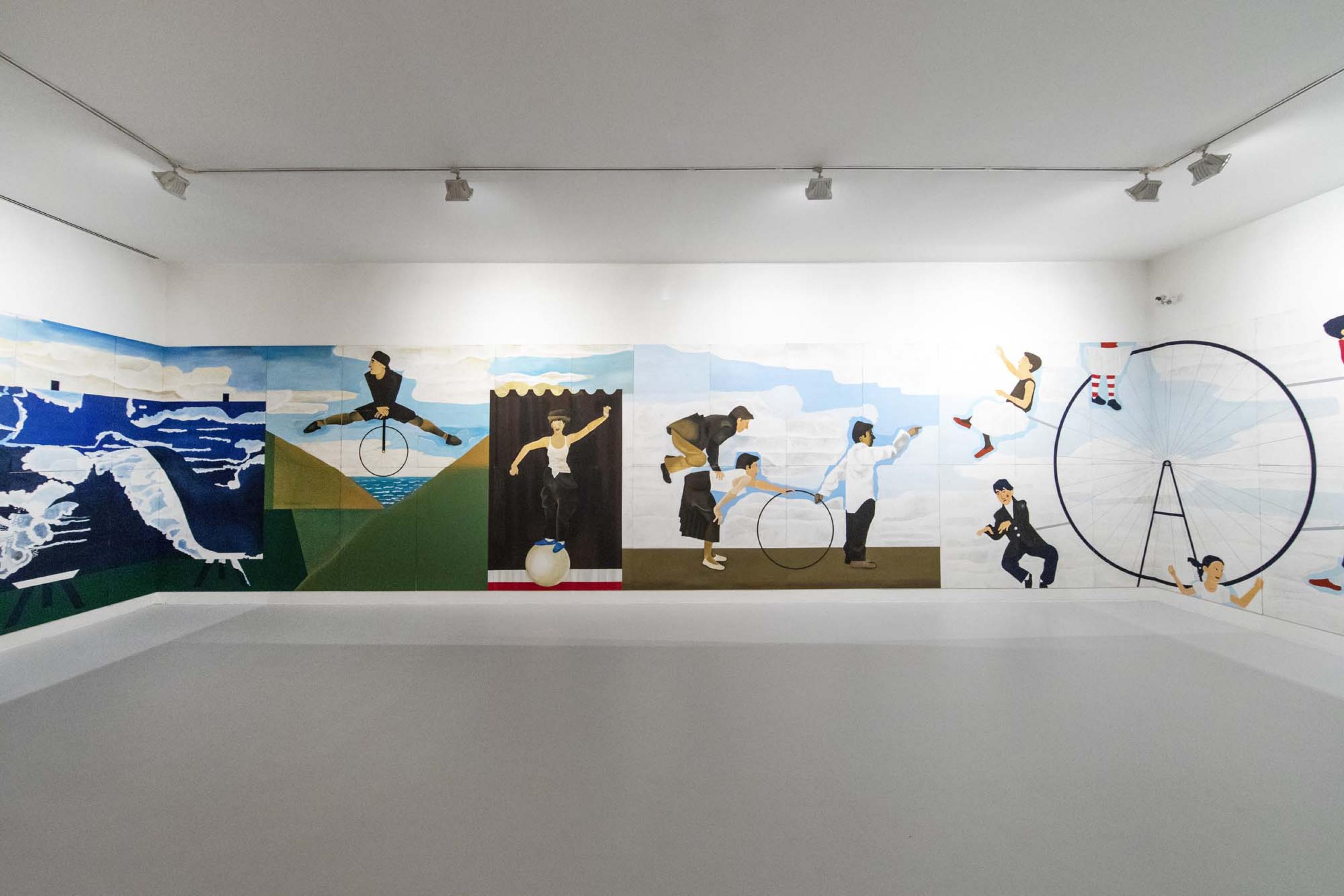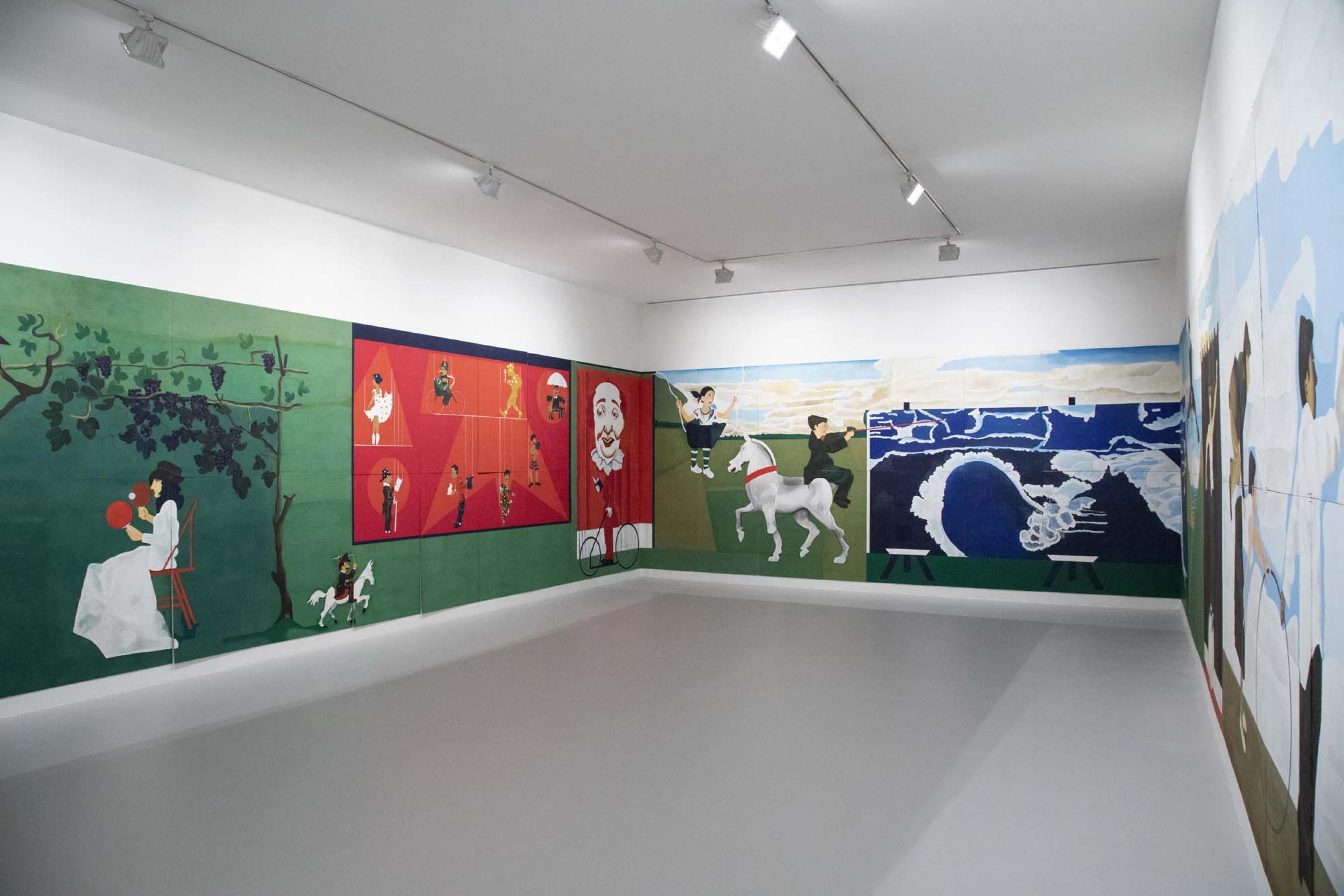 Spoldi’s distinctive approach lies in his refusal to be confined by the dimensions of the “painting”, in his creation of large-scale installations, and in the way he takes inspiration from a universe of images from childhood, cartoons and comics to create imaginary and delicately stylised icons.