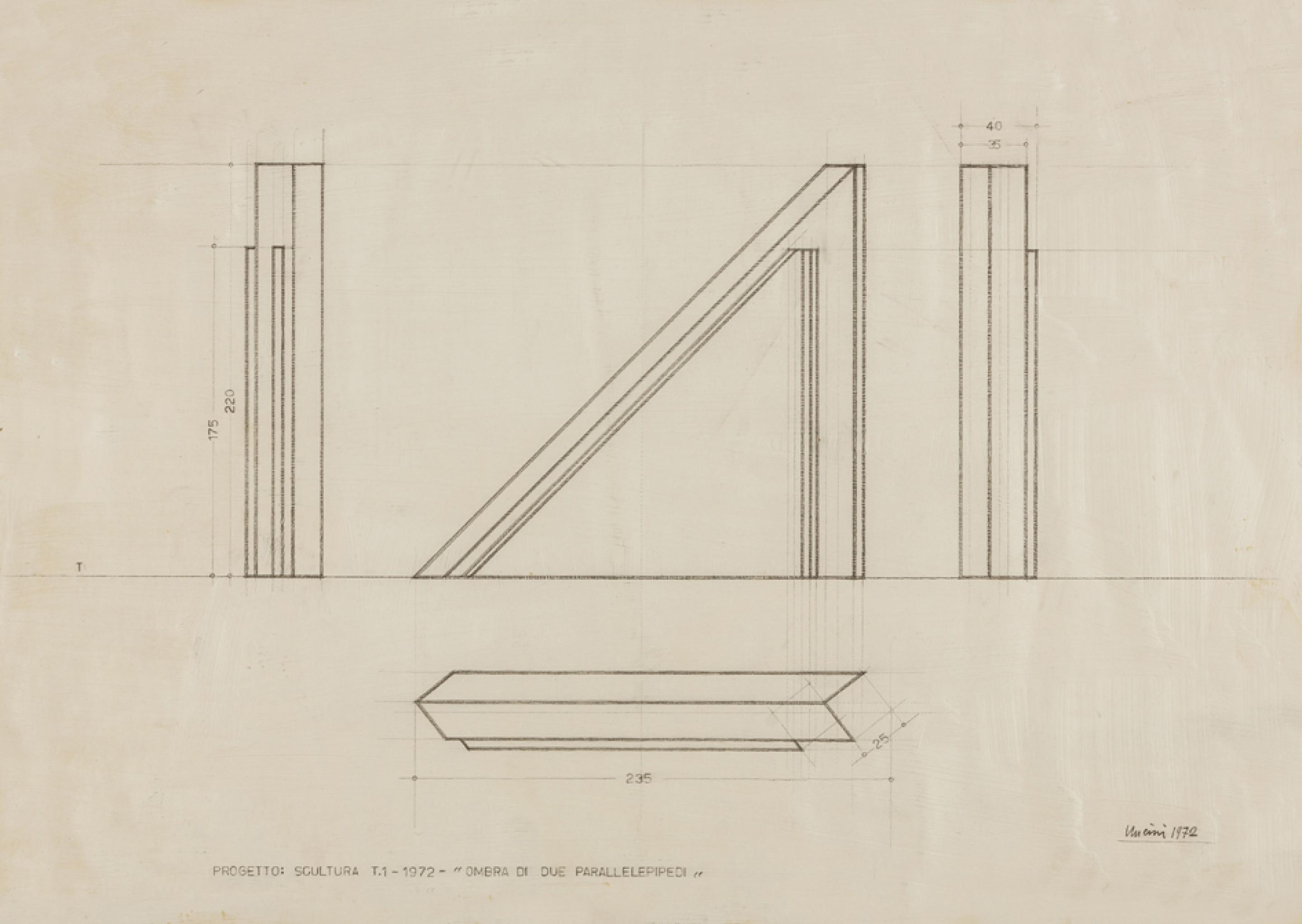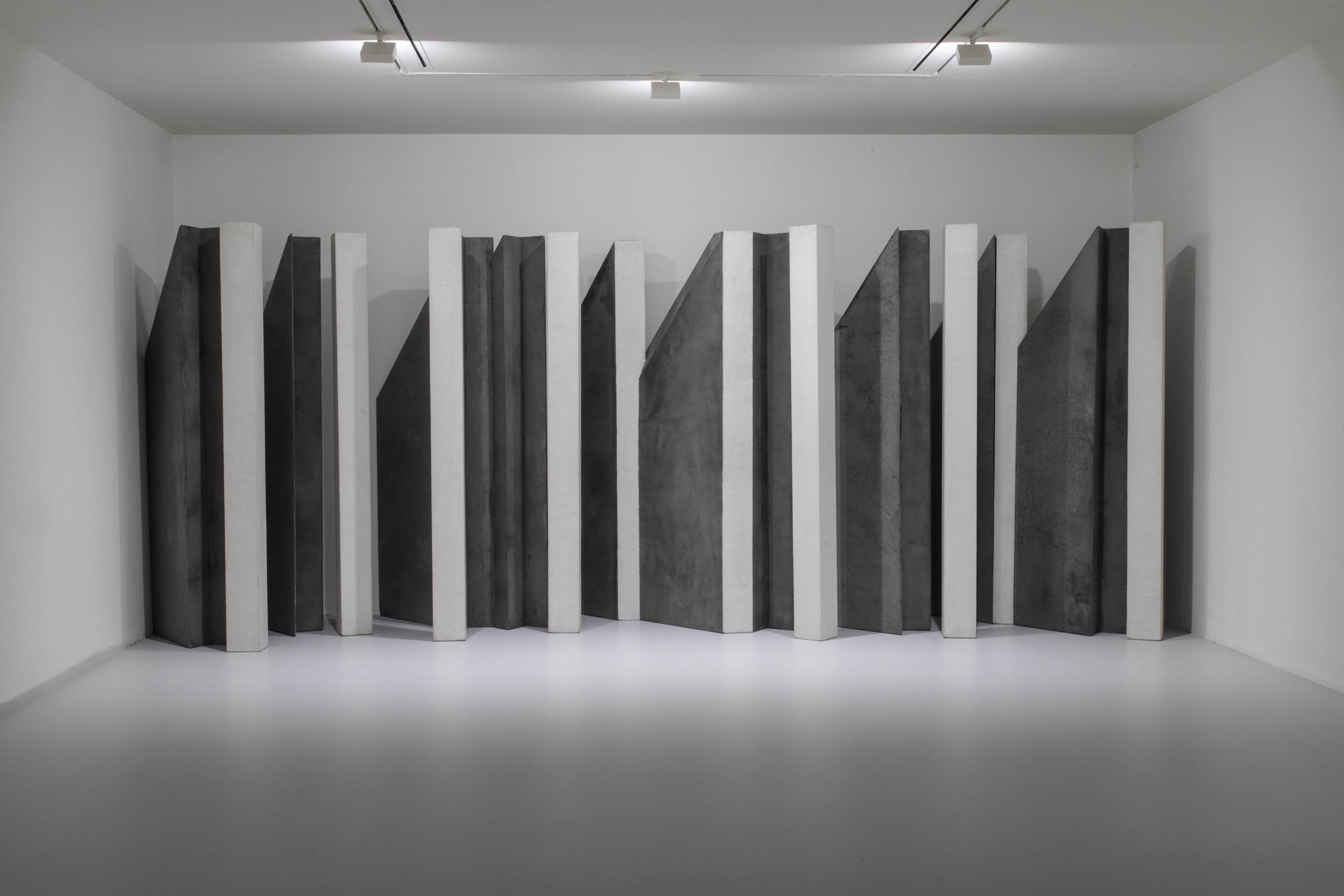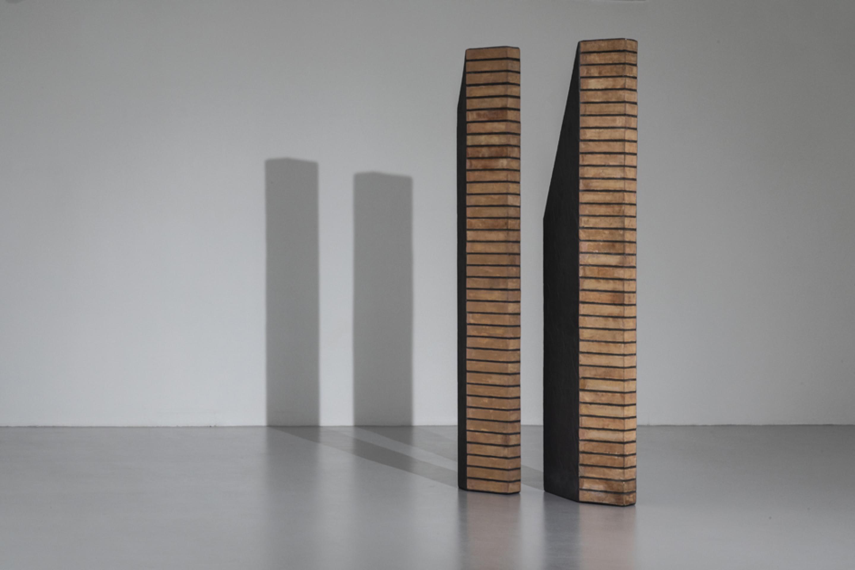 The solo shows held in Turin at Galleria Christian Stein in 1968, 1971 and 1975, and at Studio Marconi in Milan in 1973, 1976, 1980 and 1995, mark important stages in Uncini’s career. The Bricks series date from 1969 to 1972, and between 1972 and 1978 Uncini created the Shadows series, in which each structure engages with and confronts its own shadow, also constructed as an autonomous volume.