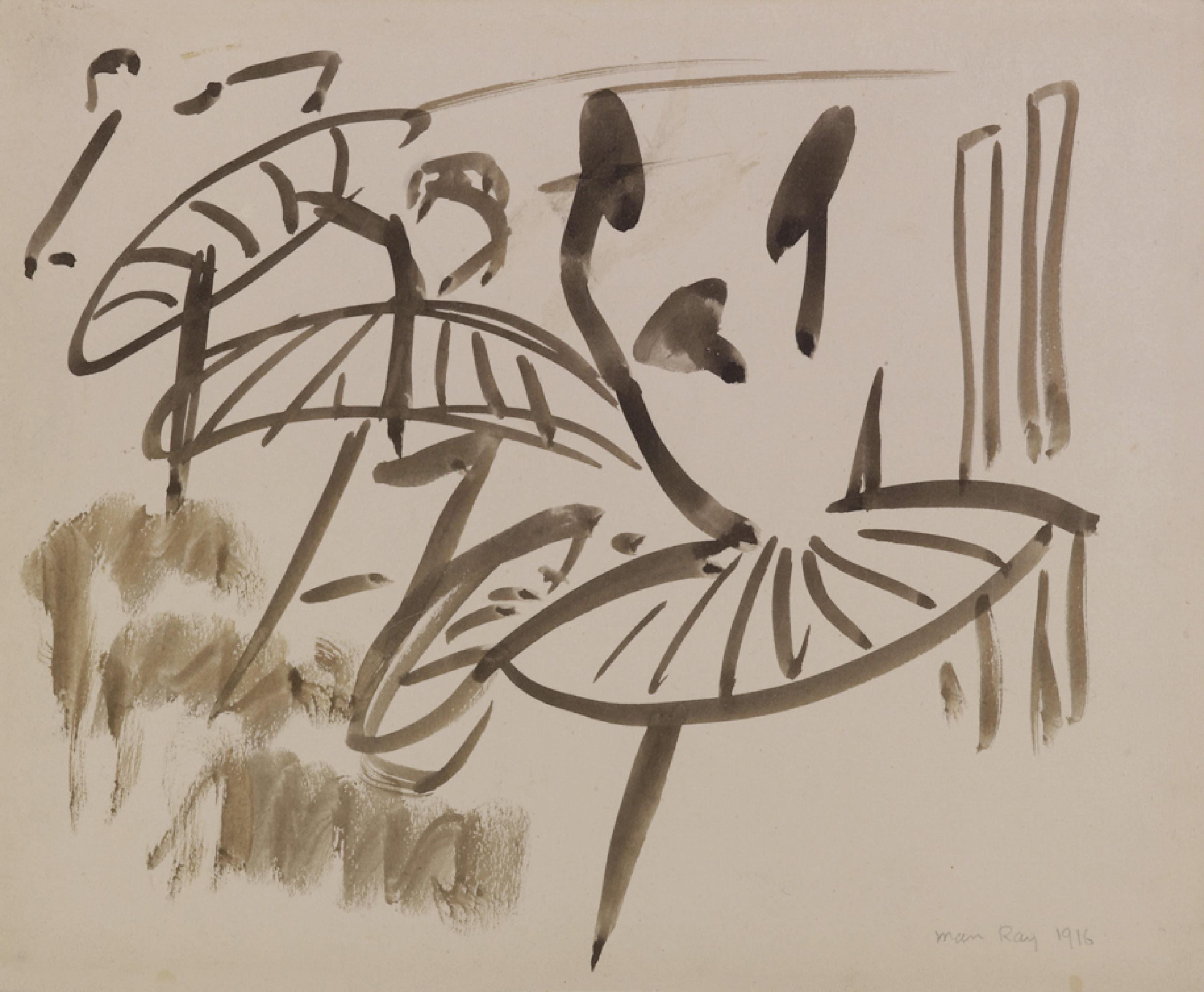 The year 1913 has been decisive in Ray’s early life as he moved into an artists’ colony in Ridgefield, New Jersey, where he was surrounded by other artists - among them Marcel Duchamp, with whom he started a lifelong friendship and collaborated extensively. Inspired by his friend, the inventor of the readymade, Man Ray used found objects in his art as early as 1919. During this prolific period he began experimenting with the print medium and continued drawing and painting. He also began writing poetry. As can be seen in many titles of his photographs, paintings, objects and drawings, they are embodiments of his linguistic experiments which oftentimes play on words and are humorous, critical and provoking.