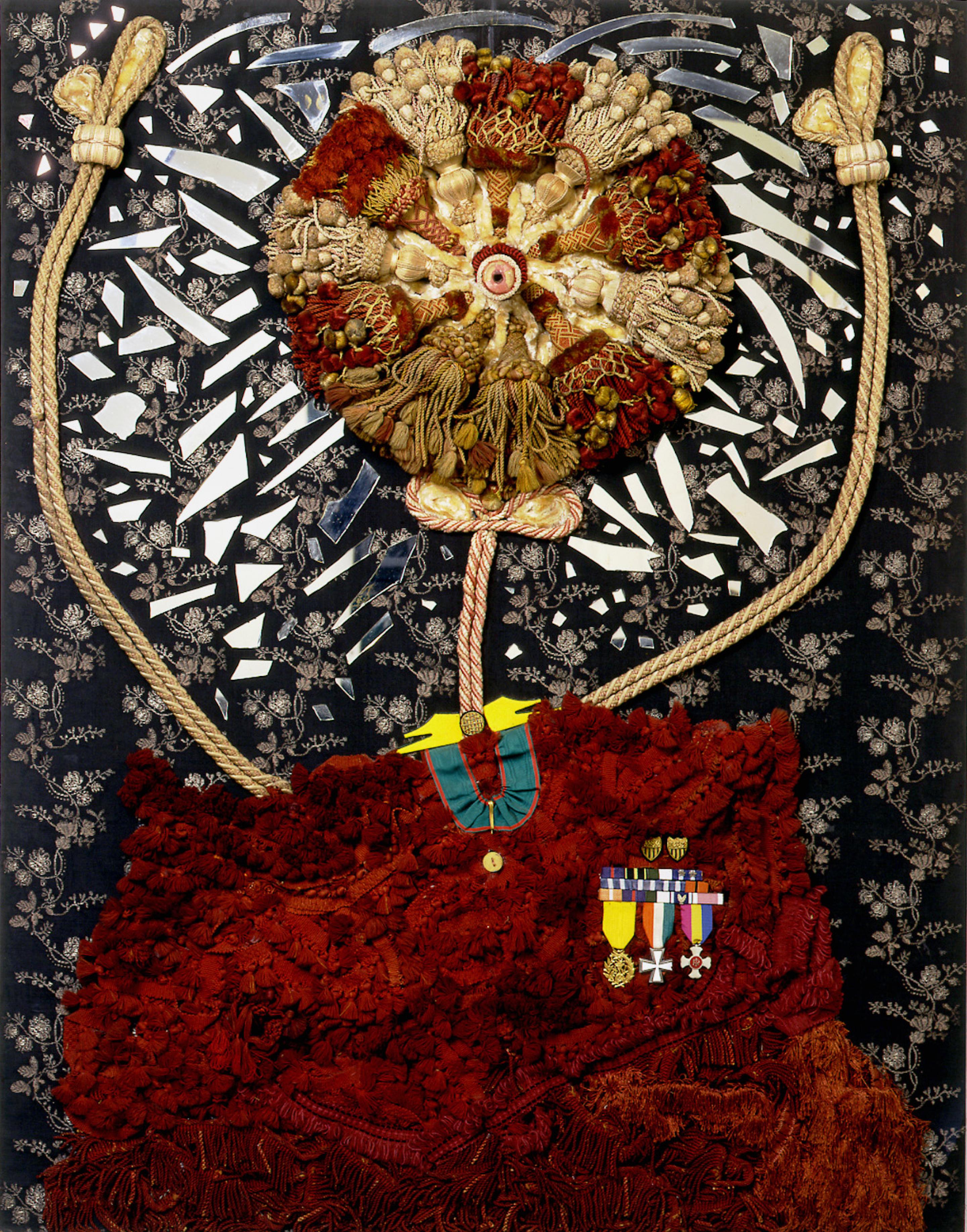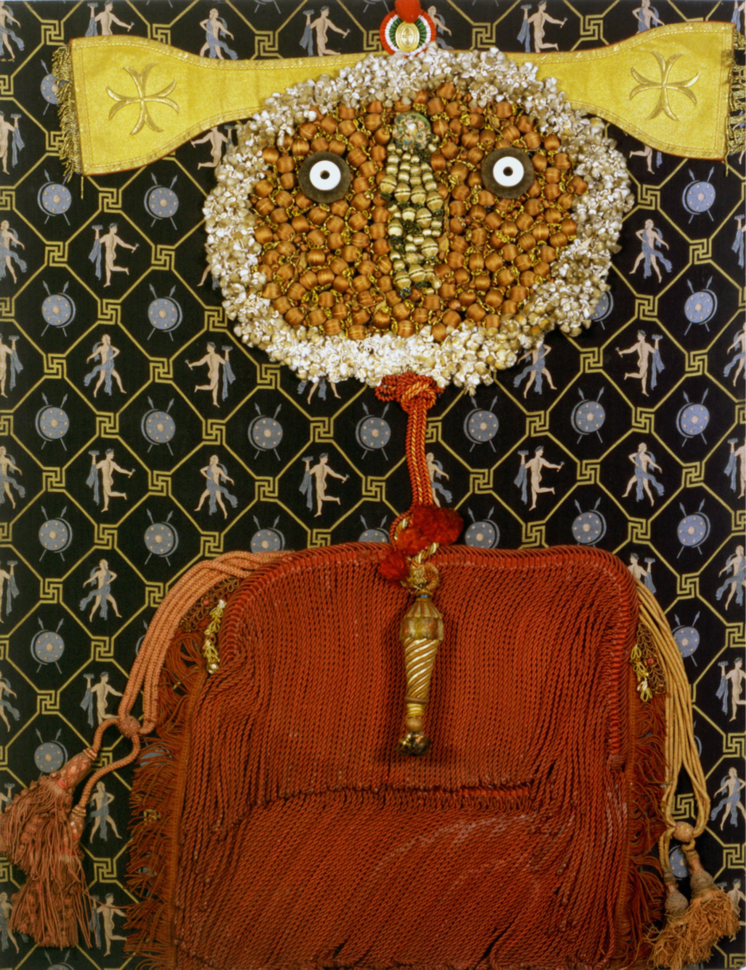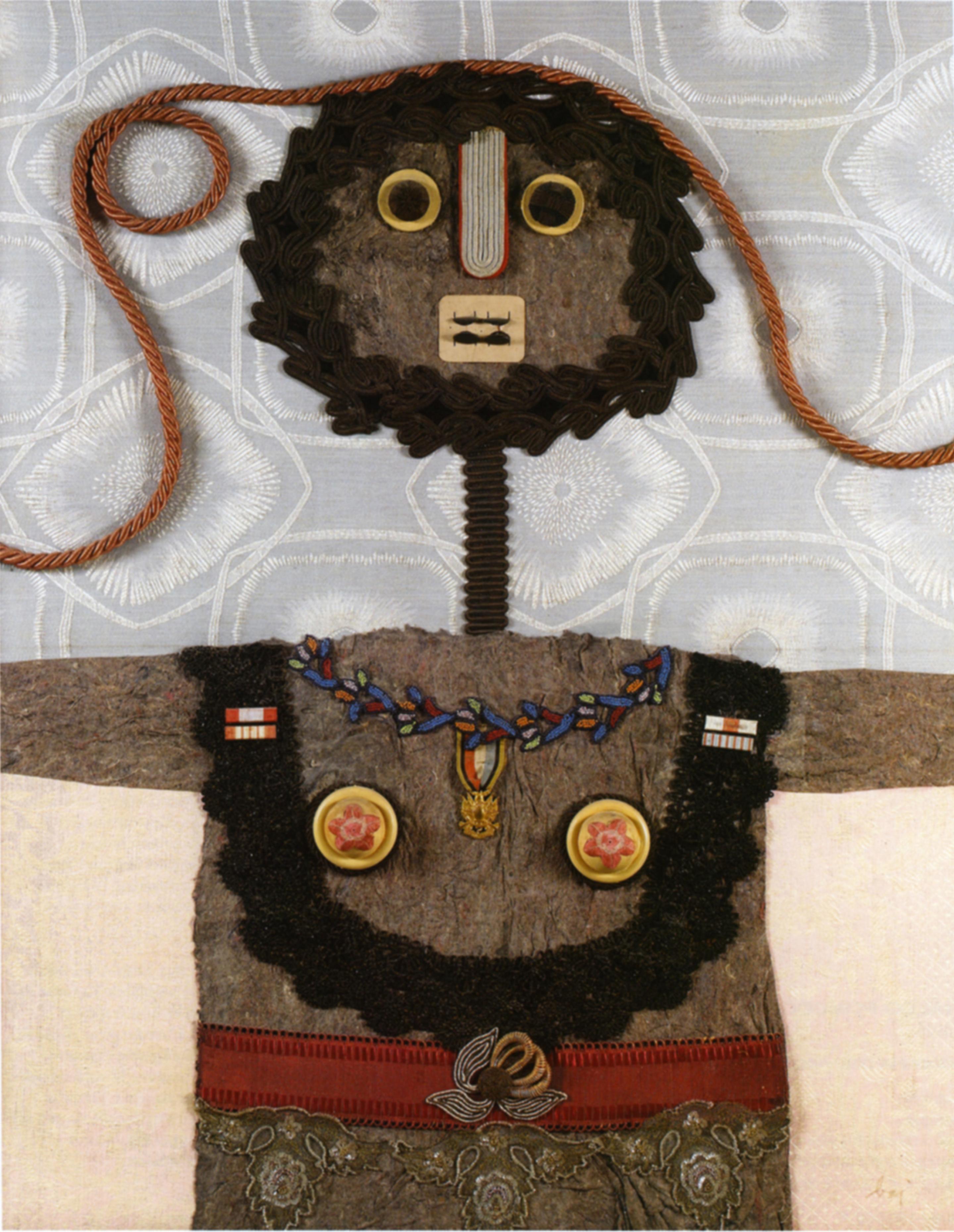 About them Breton noted that they deserve a more subtle critique as they bear in themselves a quotient of seductive femininity. These very decorated and honourable females, born from passementerie assemblages, are the aristocratic portraits of ladies whose aulic names and patronymics are discovered by the artist in history, in his memories and in the Grand Larousse illustré or in other encyclopaedias.