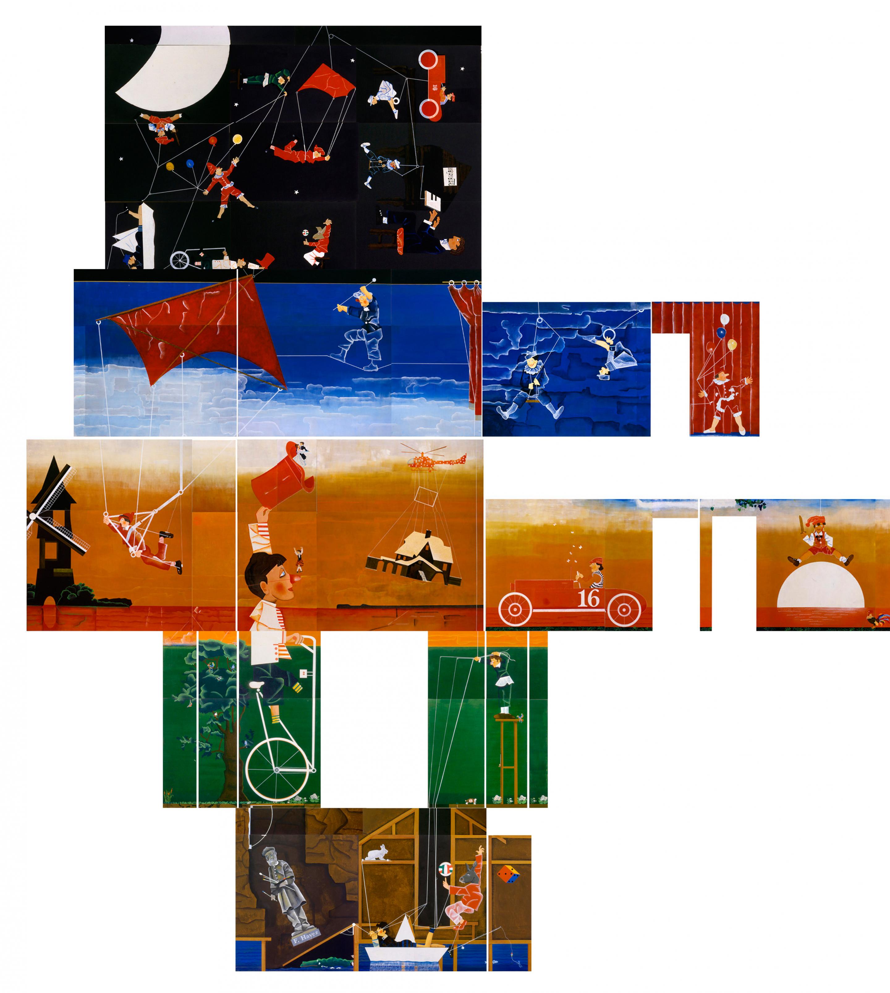 The Marconi Foundation is pleased to present an exhibition by Aldo Spoldi entirely focused on a monumental work developing on the four-level exhibition space at 15 via Tadino; it is the painter's self-portrait running from the basement to the second floor and passing through the stairwell.