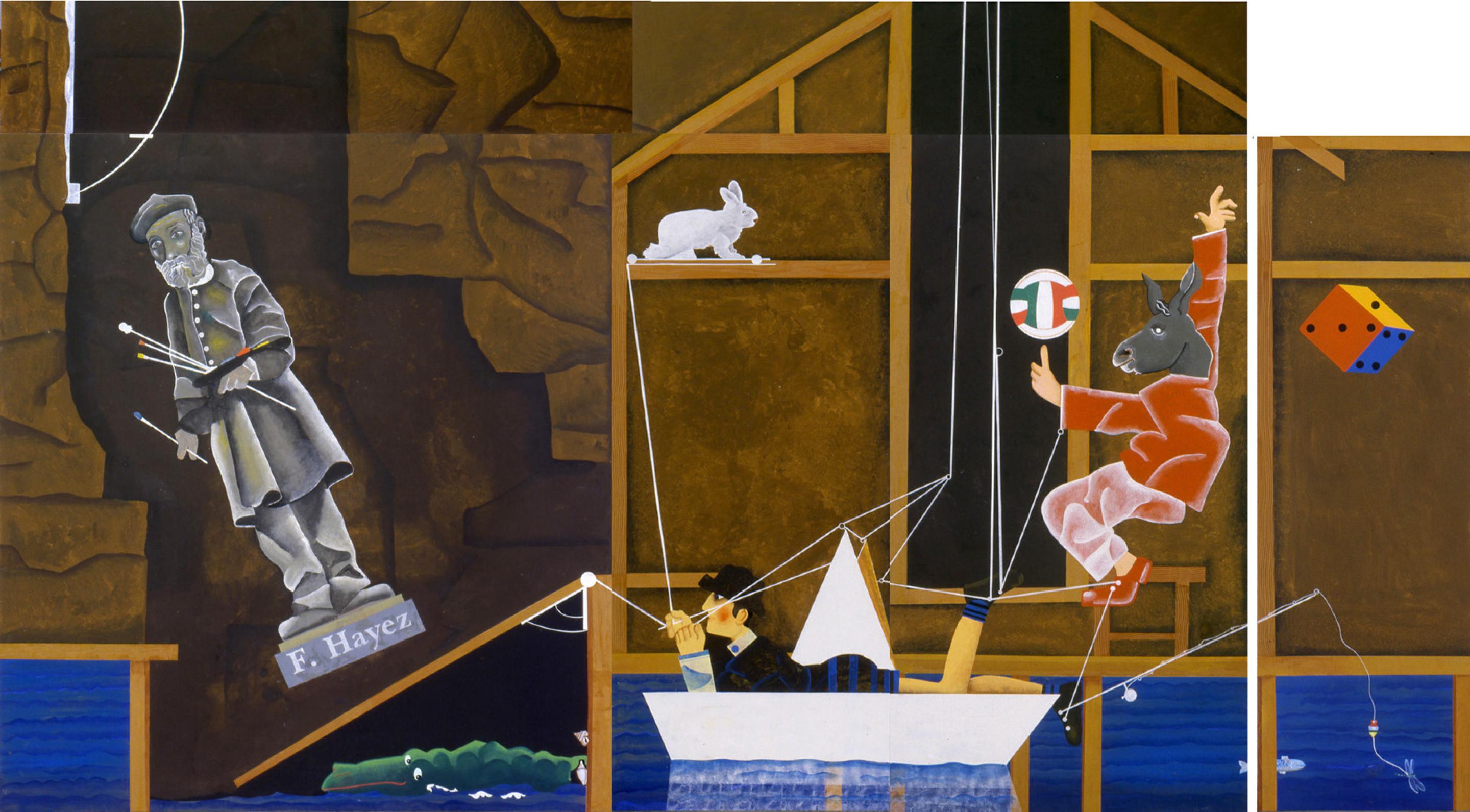 The stairwell, instead, is dedicated to the immortals: artists in general, Dracula, Zeuxis, God, the devil and... Apelles, the "par-excellence" artist.