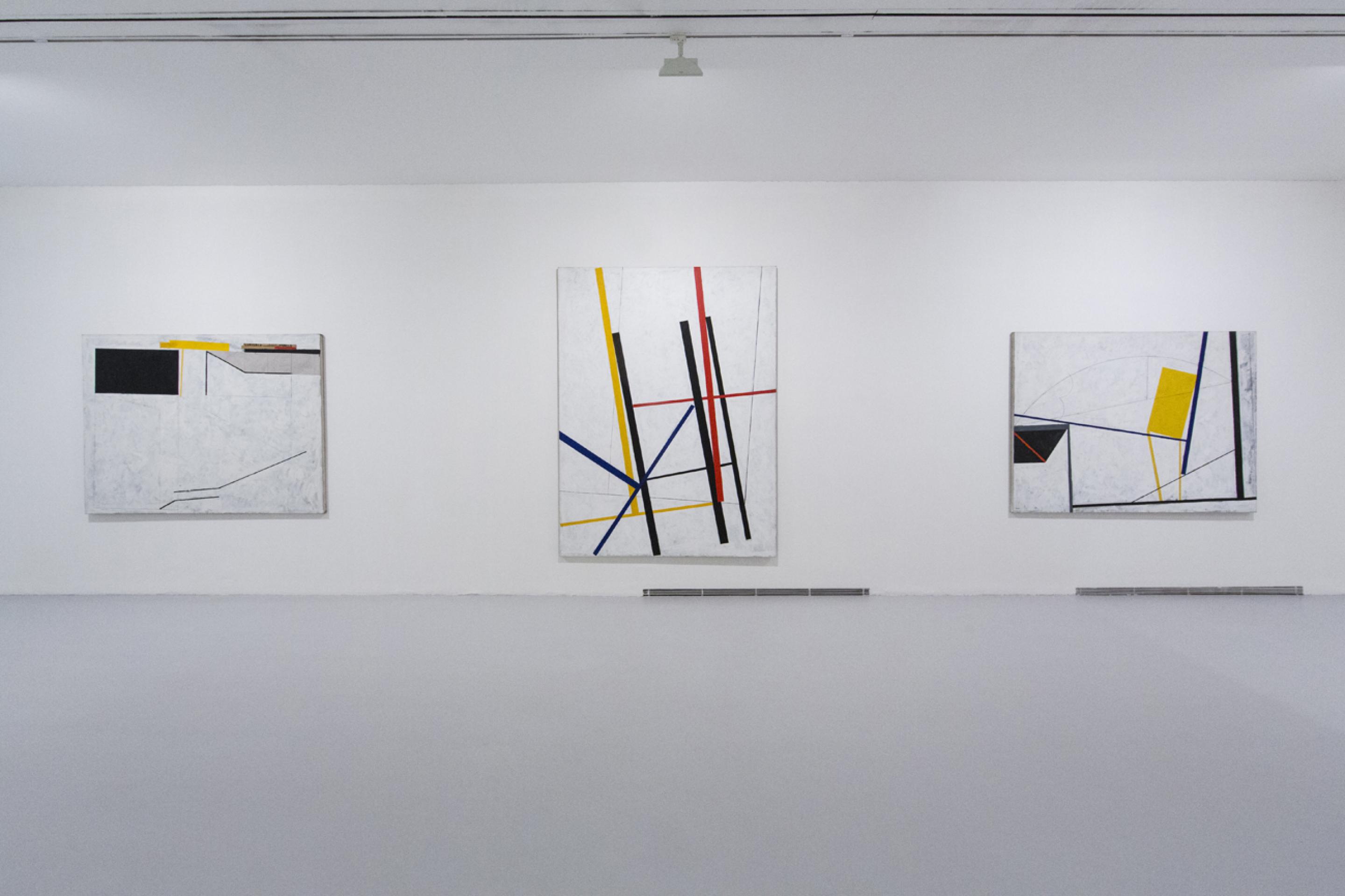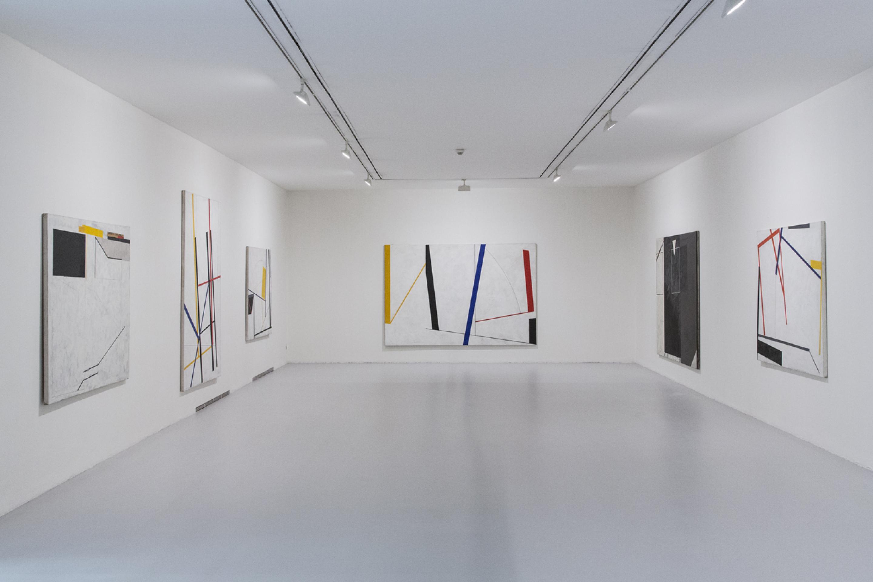The series Diagonals are from the early Eighties and consist of straight lines whose tight rhythm oscillates between black and white to a search for new montages and movements.