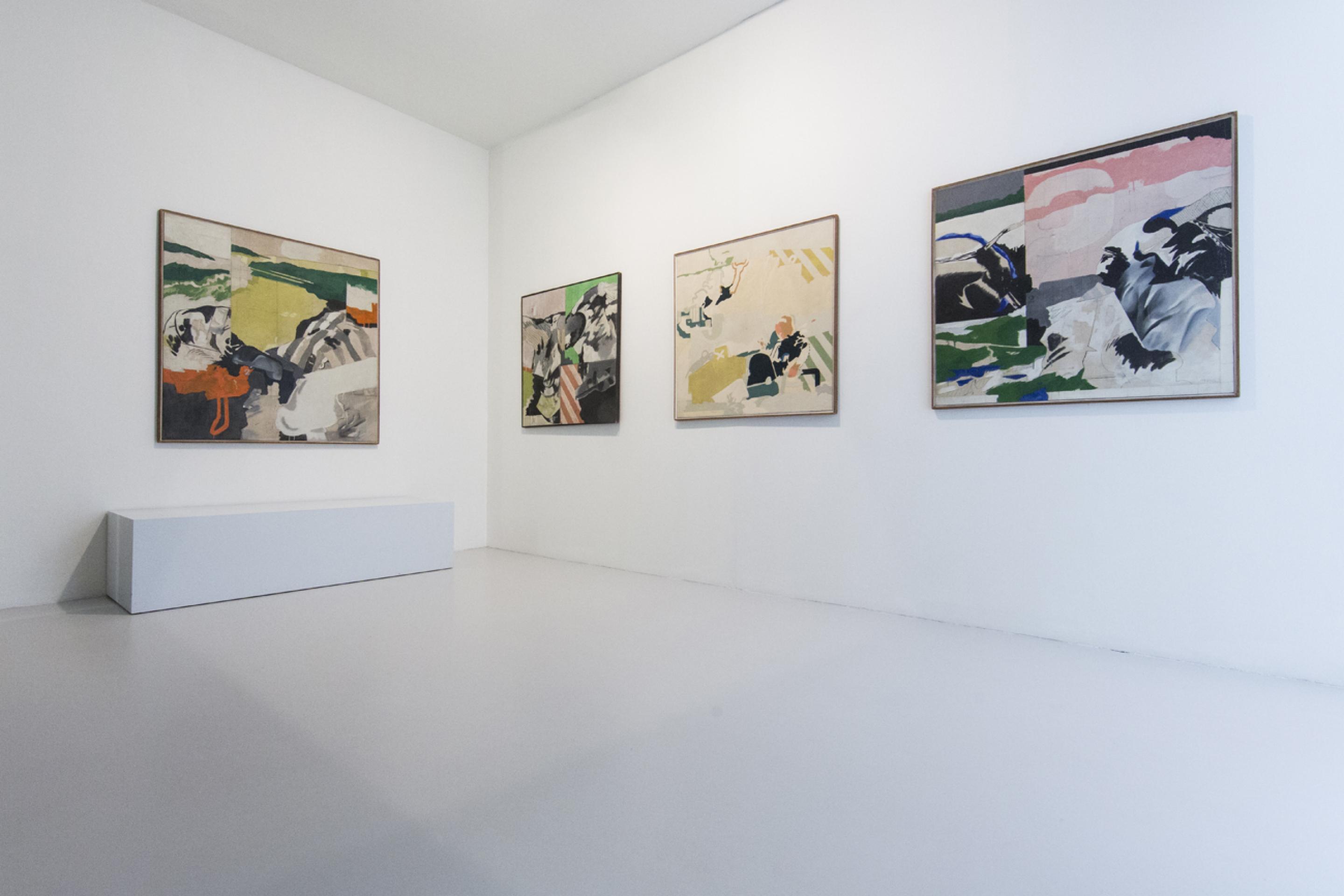 The exhibition concludes with the Untitled works from 2011: a series of acrylics on canvas in which the colour range restricted to tones of white, black and grey seems redolent of fresco painting.