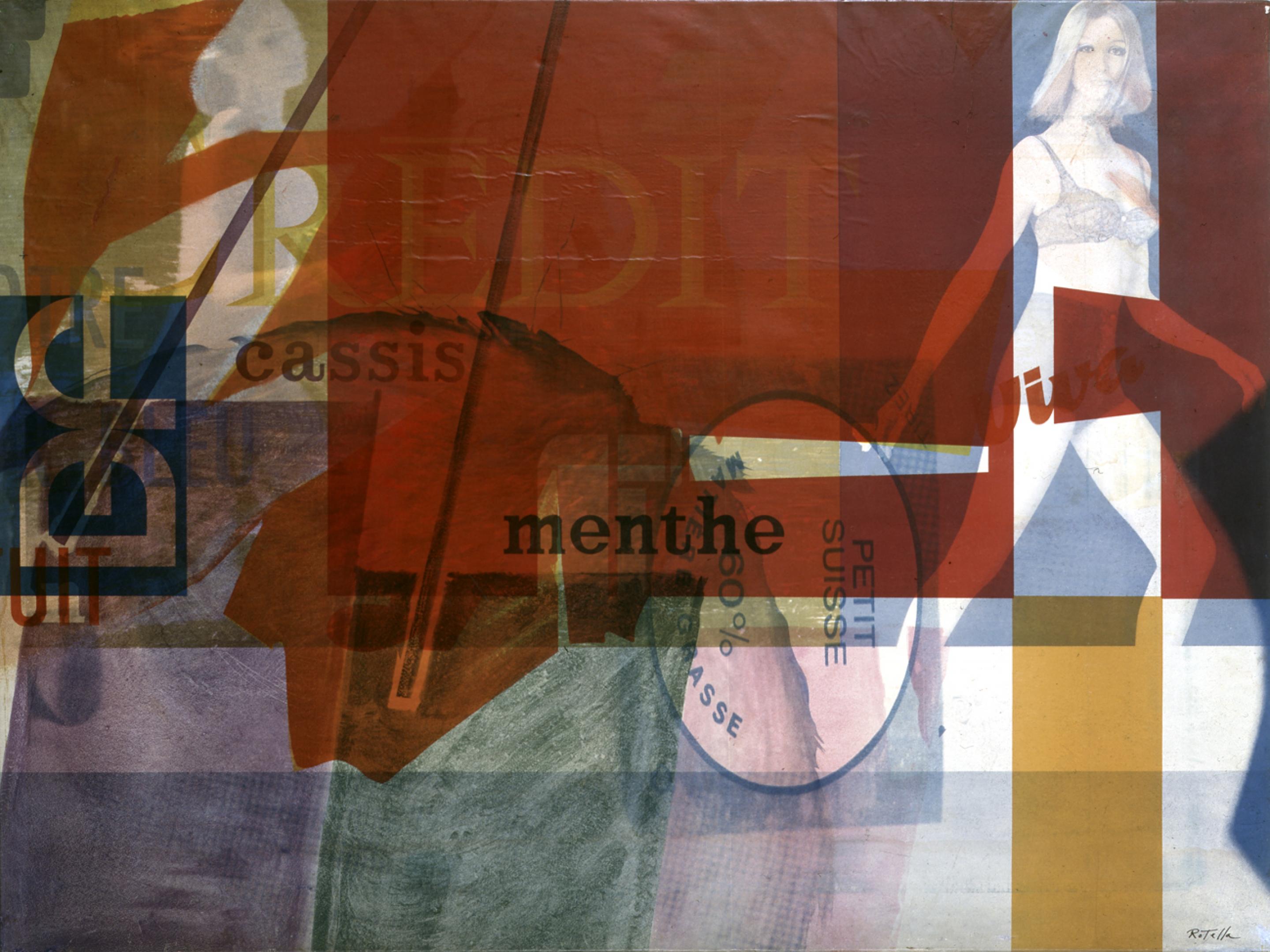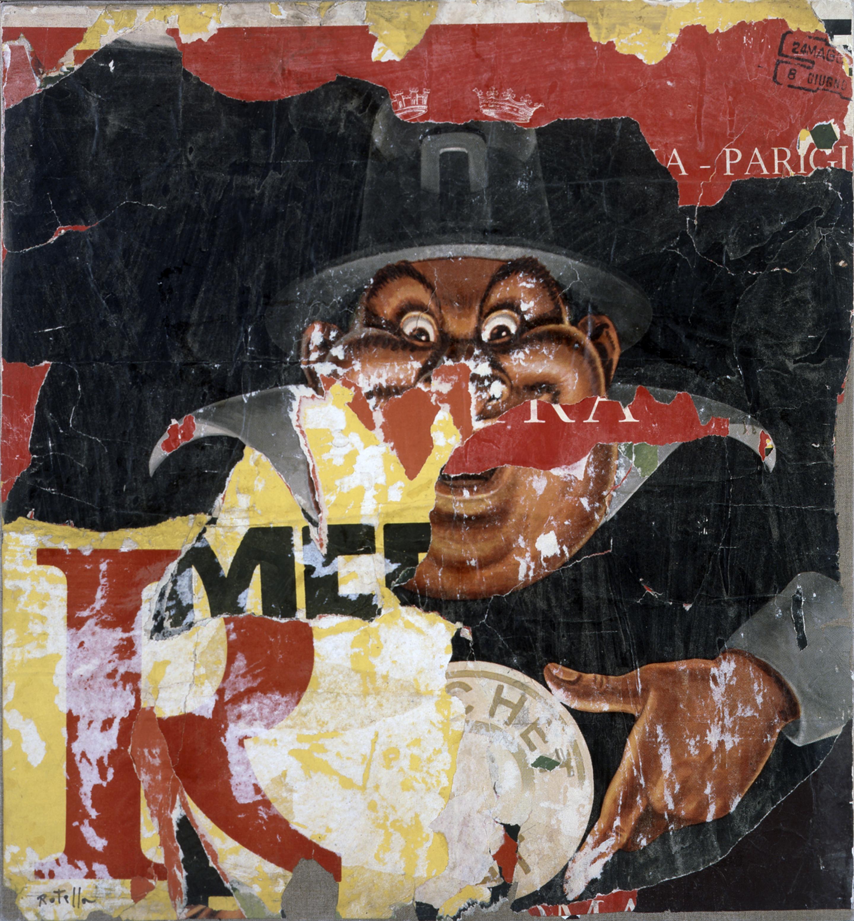 By the mid-Sixties Rotella was among the exponents of Mec Art and executed his first artypos, made from printing proofs that he selected and then mounted on canvas or on plexiglass, using a typographic process.