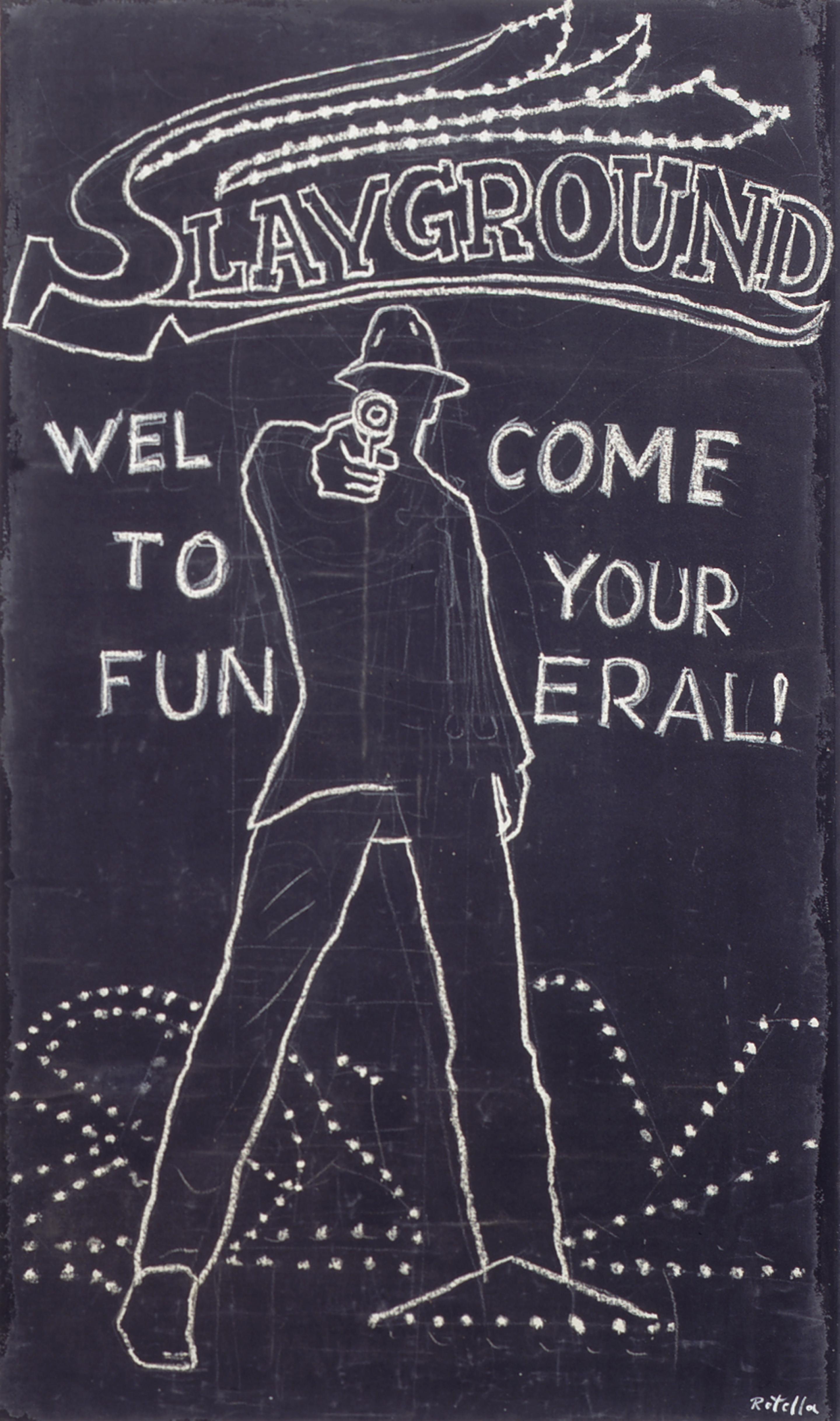 Among the works on display at the first floor of the Foundation's premises there will be Eclisse gialla (collage, 1949), Outlaw Jane Russel (acrylic on canvas, 1970), Slayground (1973) and a big-sized blank (Untitled, 1981, cm 300x600), exhibited for the first time in 1981 at Studio Marconi when the first "coperture" executed by Rotella were presented (avertising posters covered with monochrome sheets of paper in order to cancel any form of communication).