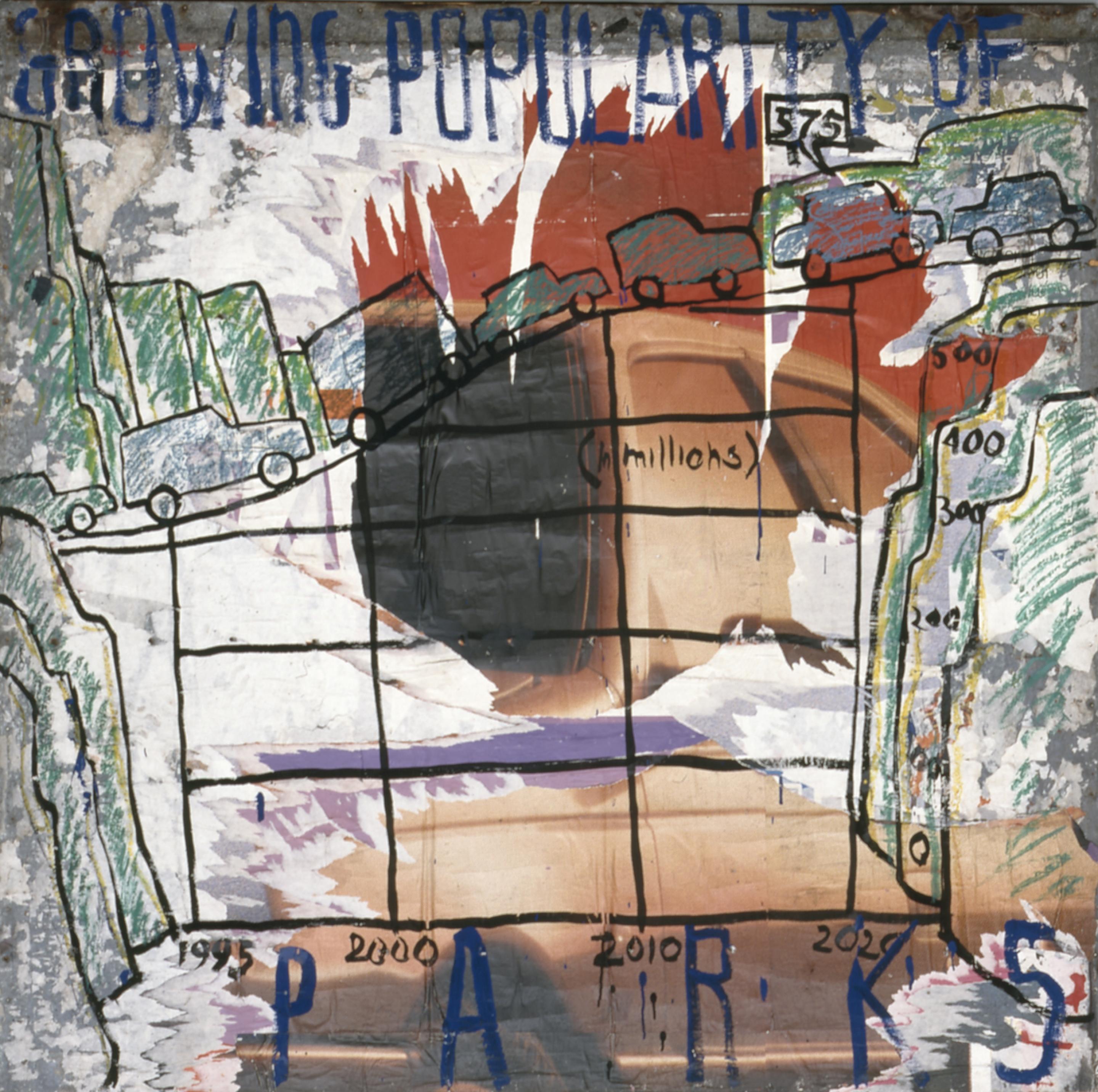 La lezione di anatomia, together with Djerba (1987) and Growing popularity of park (1989) will be among the overpaintings on display from the Eighties consisting in the artist's interviewing graphically or pictorially on a poster that was intact or had been torn previously, using acrylic colours.