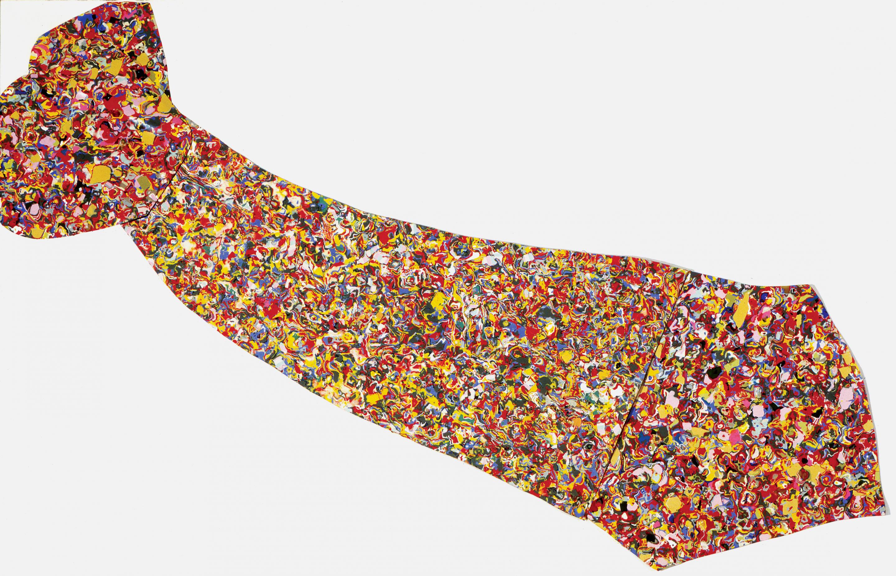 Among the big plastic ties, the Cravatta di Jackson Pollock (1969) will be on display, made of celluloid with a lot of coloured spots, a sort of tribute to action painting and to the American painter’s mood.