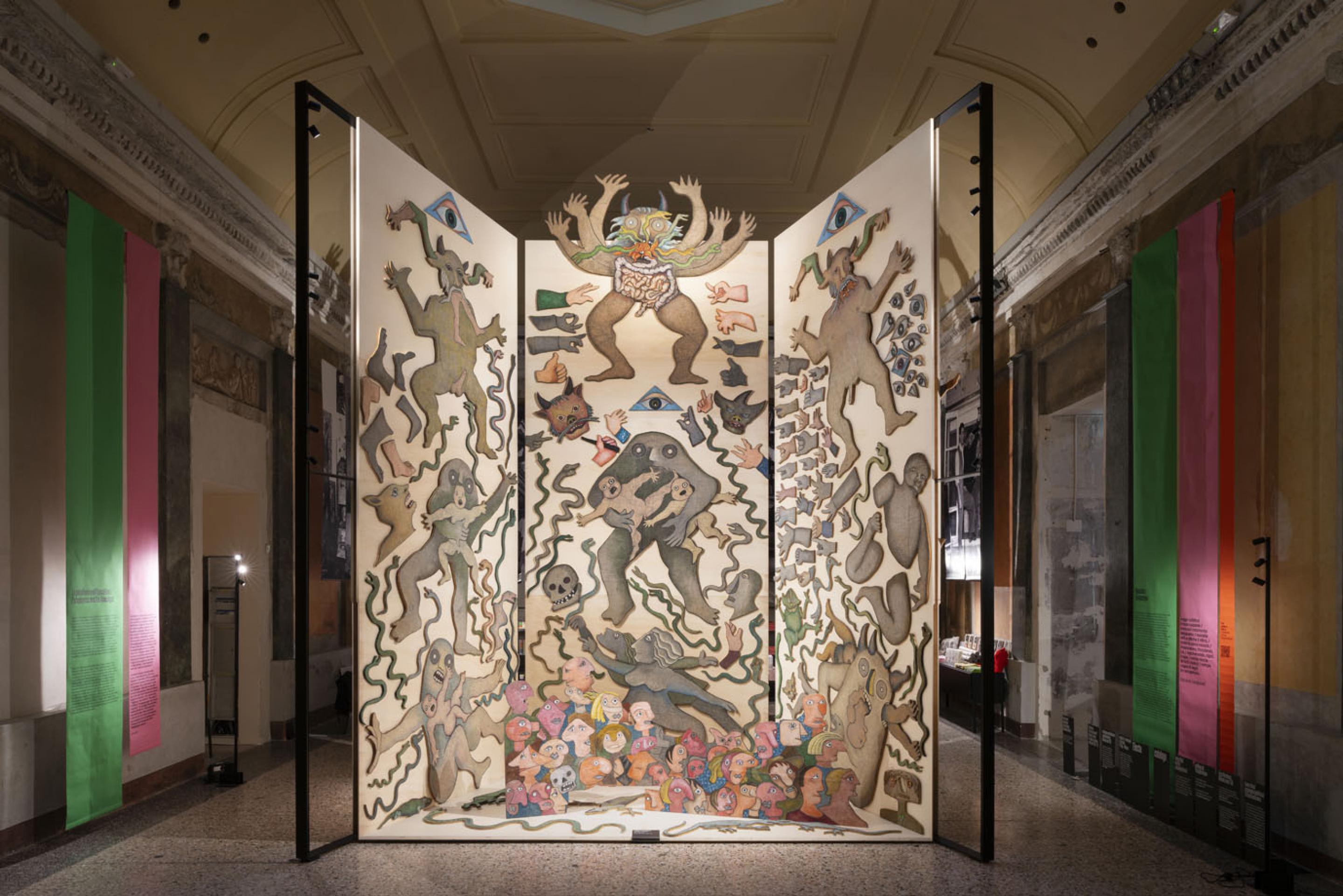 Baj returns to the Sala delle Cariatidi in Palazzo Reale, exactly one hundred years since his birth and twelve years after the exhibition, in the same room, of I Funerali dell’anarchico Pinelli, which for the first time will be integrated into an anthological itinerary and a detailed dialogue with other works by the master.
