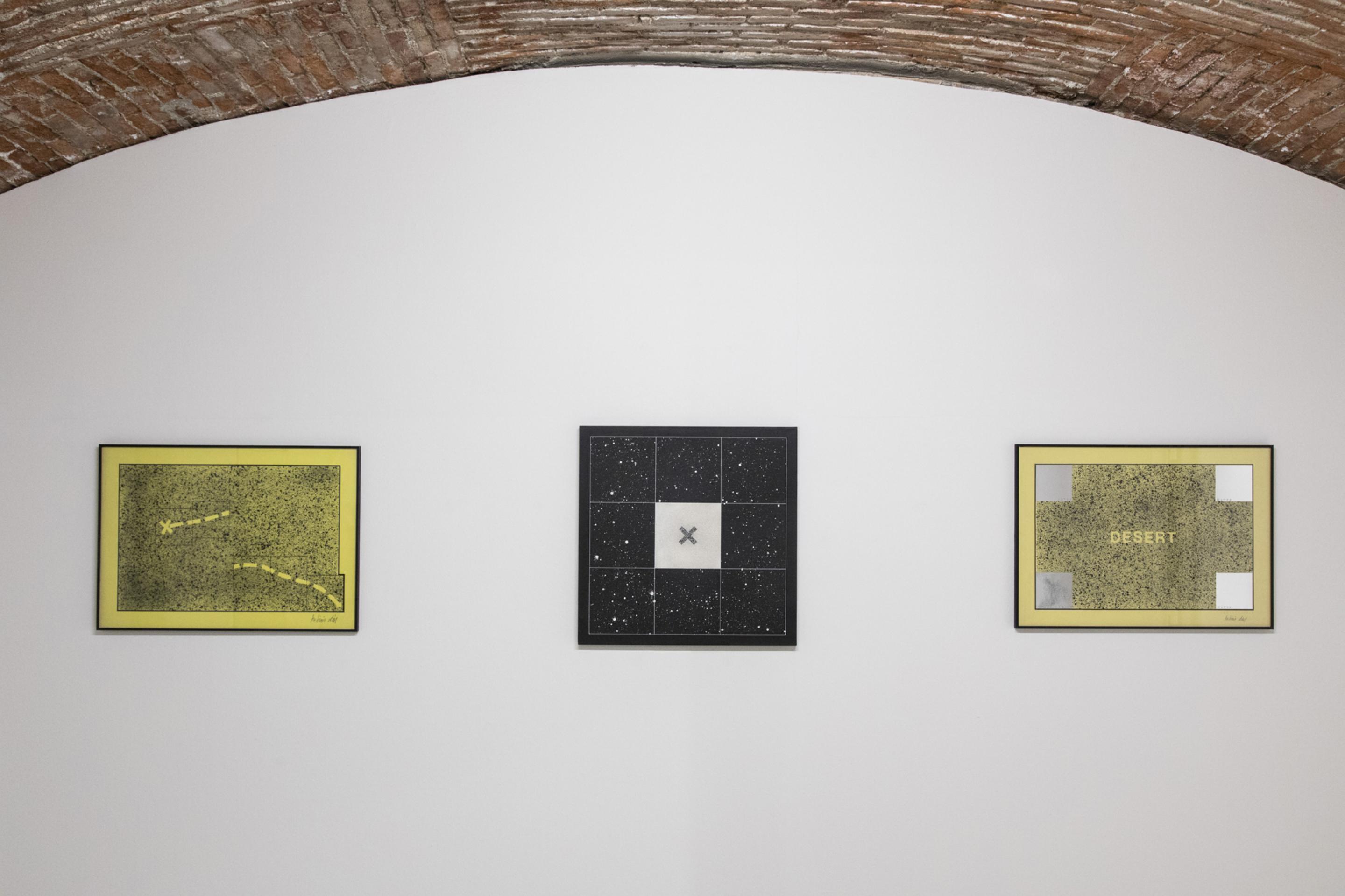 Let it absorb, Chinese Monument, Environment for the prisoner, The incomplete biography, Do it yourself, desert (stone) sono solo alcuni dei titoli delle opere in mostra, espressioni tra l’enigmatico e l’insignificante, un ready-made tratto dal gergo pubblicitario o da slogan politici, in cui l’associazione parole-immagini è sconnessa e sconcertante.