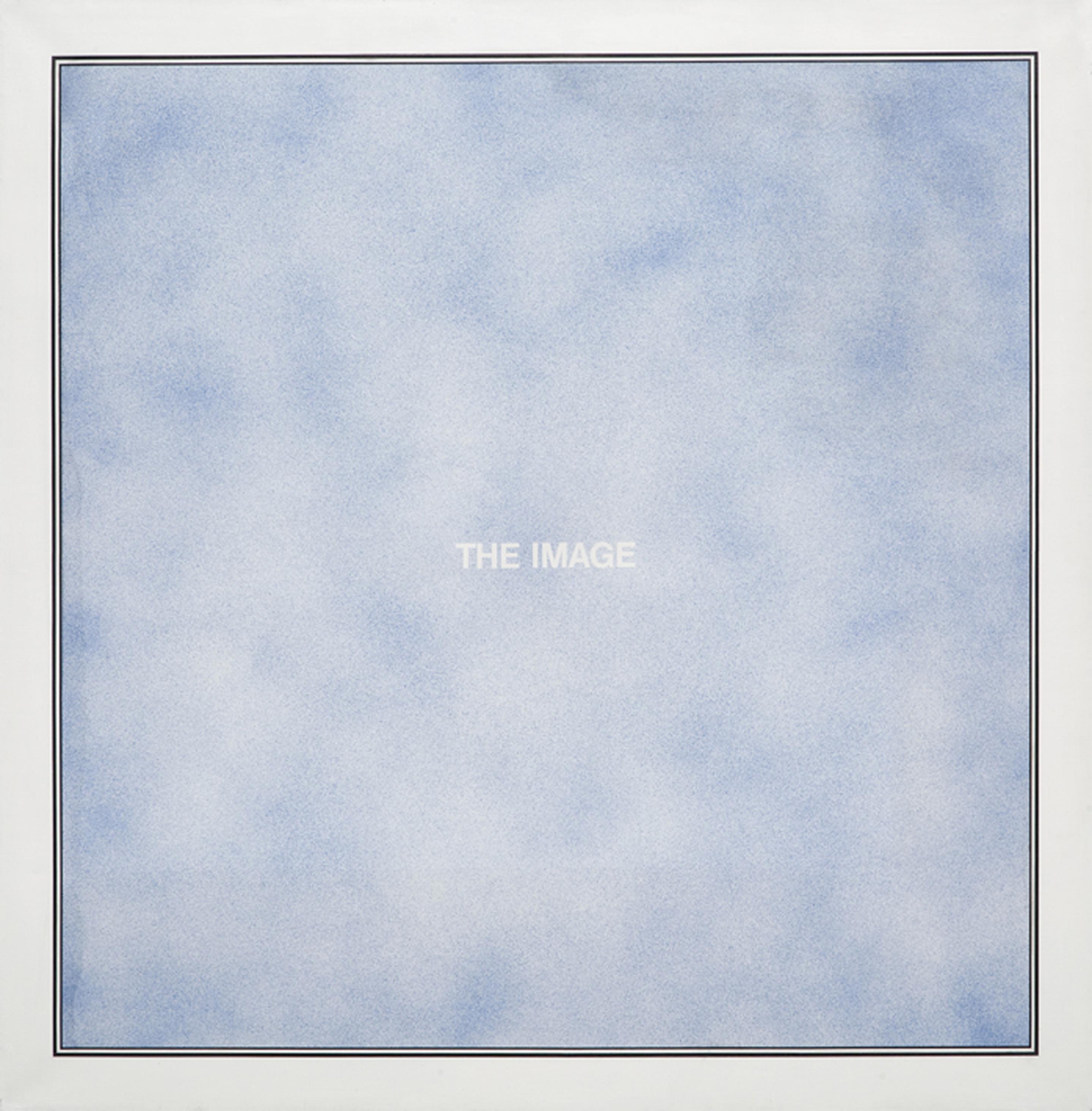 Pittura e parole distribuite sulla tela sono non-immagini, particelle prive di forma.